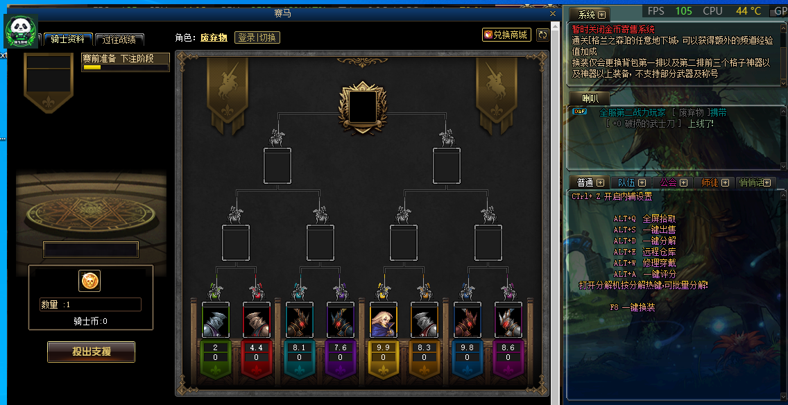 地下城与勇士86雷光赌马服可以赌马赢人民币;进Q群914793166 满100人开服
