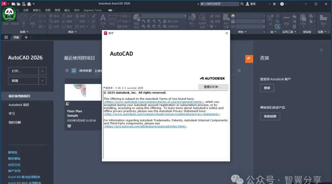 AutoCAD 2026是一个专业的计算机辅助设计(CAD)软件。它由欧特克开发和维护,广泛用于建筑、机械、电子、航空航天等领域的设计工作。AutoCAD软件允许设计师以数字方式创建、修改、分析和优化2D图形和3D模型。在AutoCAD 2026中,用户可以利用丰富的绘图工具和编辑功能,精确绘制各种几何图形、标注尺寸、添加文字和符号等。该软件还支持自定义工具栏、快捷方式和命令,允许设计师根据他们的习惯和需求优化他们的工作流程。此外,AutoCAD 2026引入了许多创新和改进,例如智能设计辅助,增强现实(AR)支持,优化的用户界面和交互体验,旨在提高设计师的生产力和设计准确性。同时,软件还支持跨平台协作和云存储同步功能,让设计师可以随时随地与他人共享和编辑设计文件,实现无缝协作。PS:智翼分享为各位小伙伴提供到的是AutoCAD 2026(CAD 2026最新版尝鲜!)简体中文破解版(附安装教程)下载,欢迎广大爱好者、设计师朋友们前来下载安装使用~