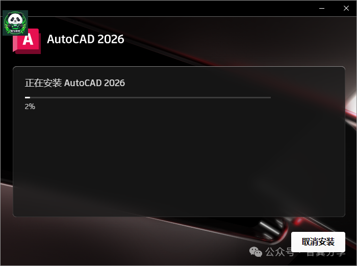正在安装 AutoCAD 2026中,请耐心稍等安装成功